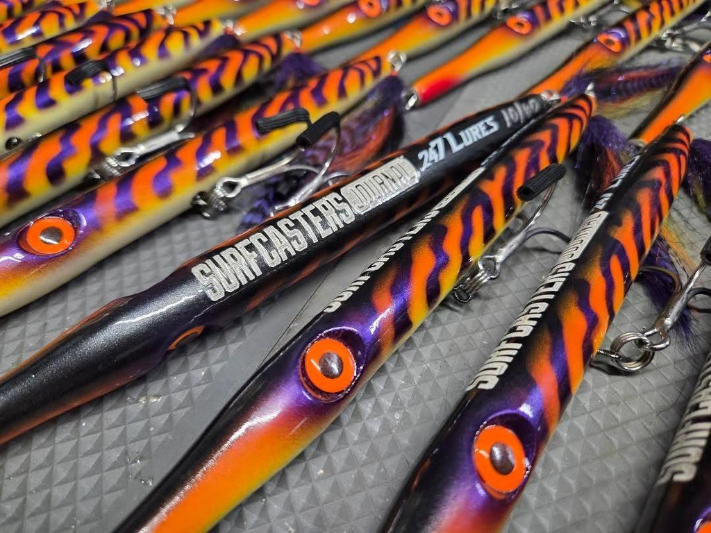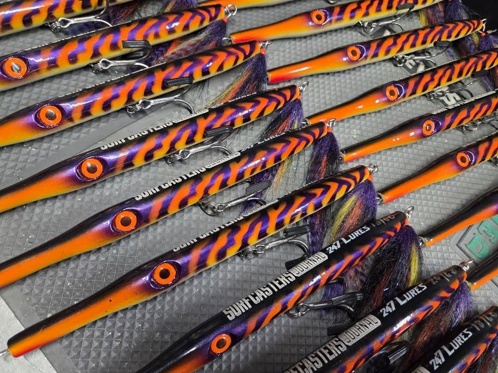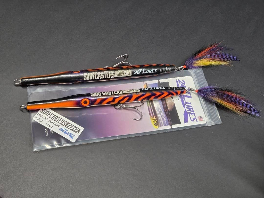 This limited run was specifically produced for Surfcaster's Journal and features a one of a kind colorway, laser etched SJ logo, custom designed tail flag, and are individually numbered. PLUS includes a Mustad 4X JawLok 2/0 hook.